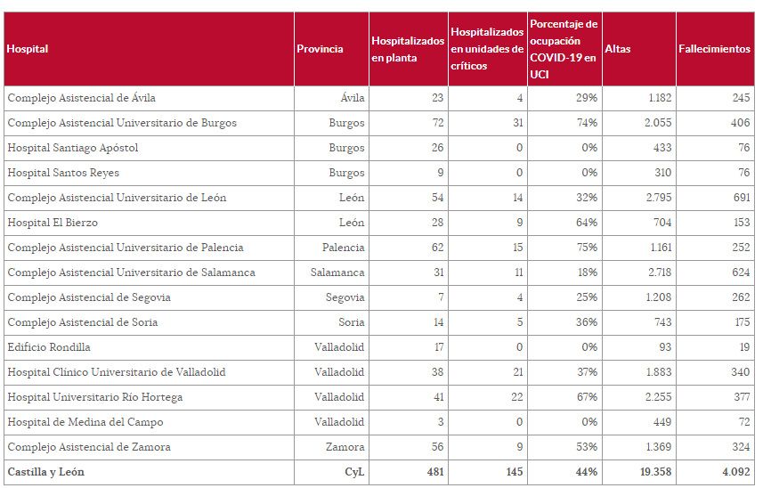 En el Hospital del Bierzo también se revierte la situación y la última jornada no hubo que lamentar víctimas COVID-19, deteniendo la cuenta en 153 totales en el centro hospitalario desde el comienzo de la pandemia. Además se concedieron 5 altas y no hubo ningún ingresado. Permanecen en la UCI 9 pacientes, uno menos que ayer (64%), y 28 en planta por cuadro COVID. Son datos de la consejería de Sanidad de Castilla y León hasta las 8h. de este miércoles 23 de diciembre.