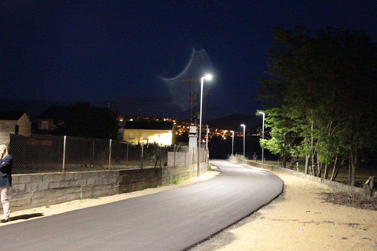 Se trata de la iluminación de casi 700 metros de vial, a lo largo de los cuales se han instalado 34 nuevas luminarias con lámparas tipo LED de bajo consumo, que viene a sustituir a las que existían que eran de alto consumo e instaladas en postes de madera y, además, eran muy ineficientes desde el punto de vista energético y lumínico y totalmente descatalogadas, por lo que era extremadamente dificultoso sustituirlas en caso de avería.