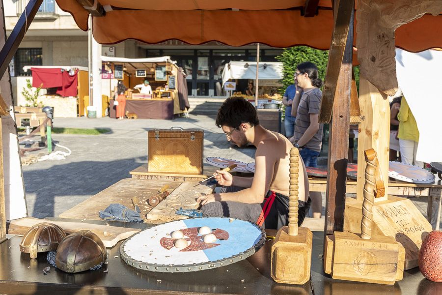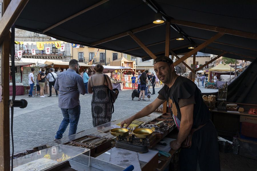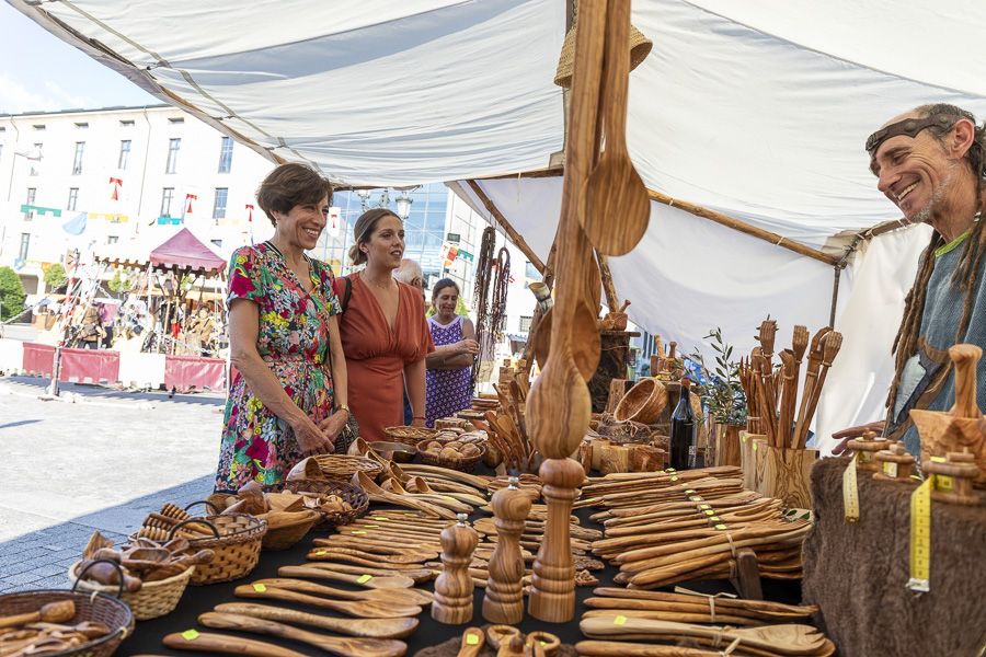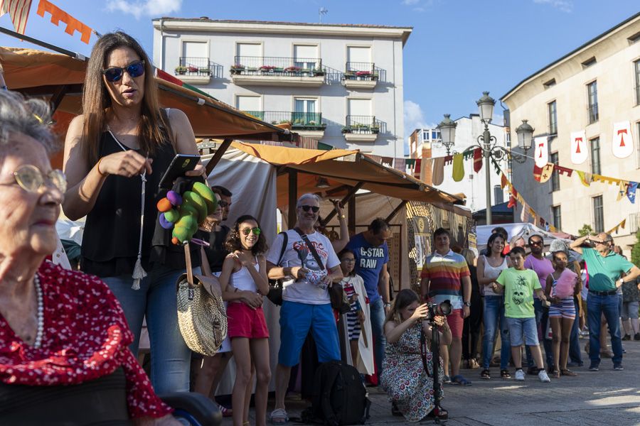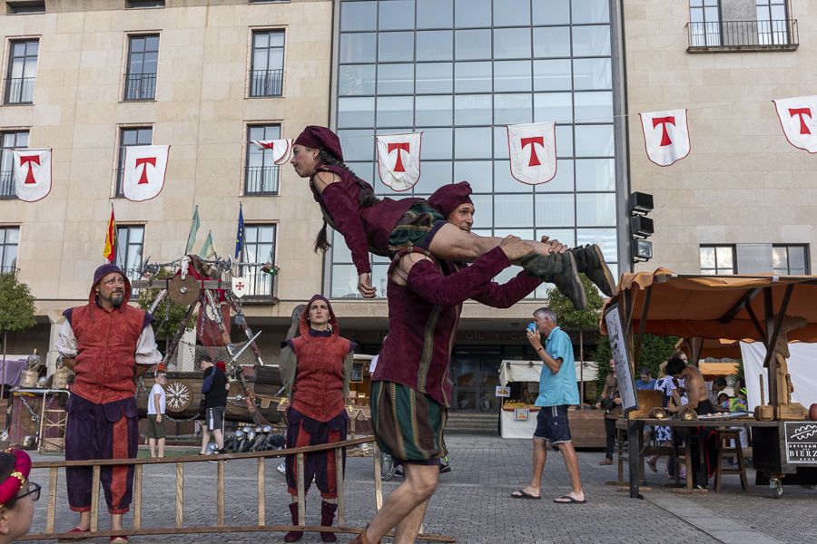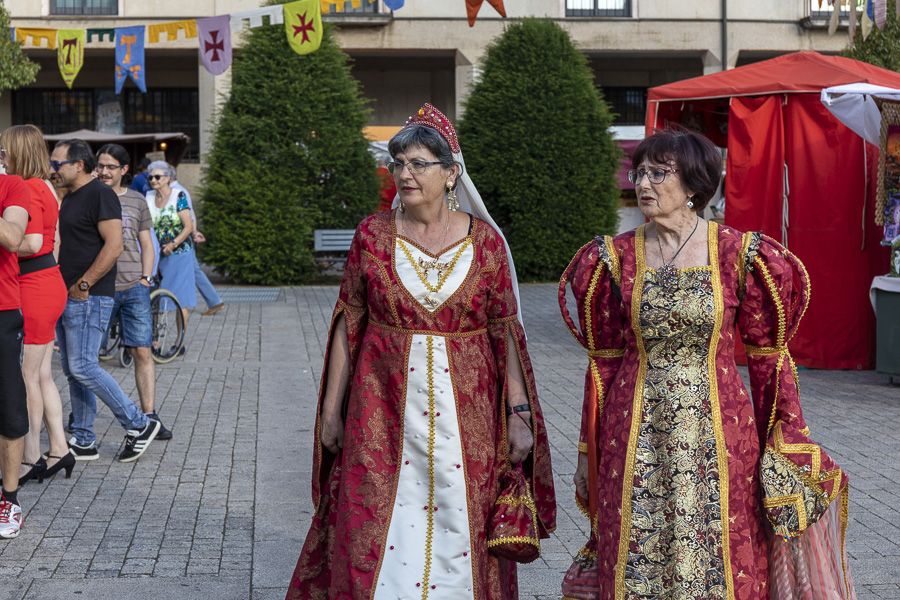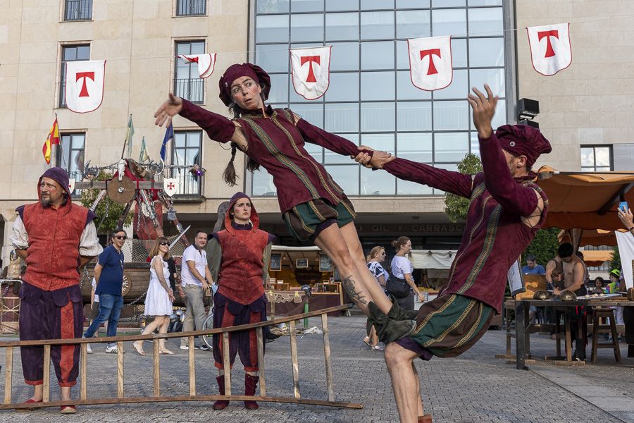 La plaza se ha llenado de curiosos deseando ver todas las piezas artesanas que ofrecen los puestos. La ambientación medieval y templaria, los disfraces y actuaciones han marcado el inicio de esta fecha tan significativa en el calendario templario de la ciudad.