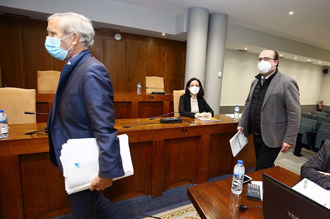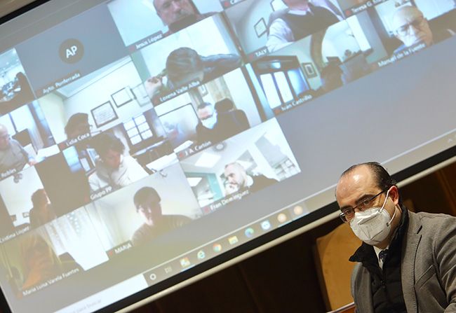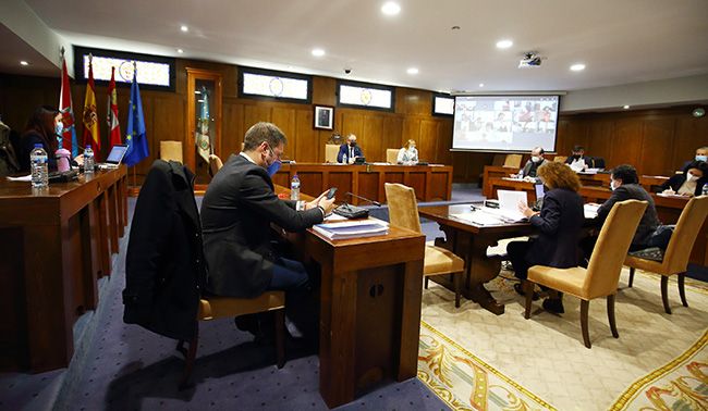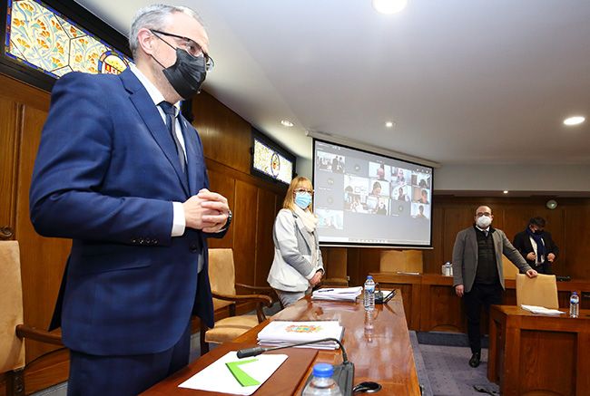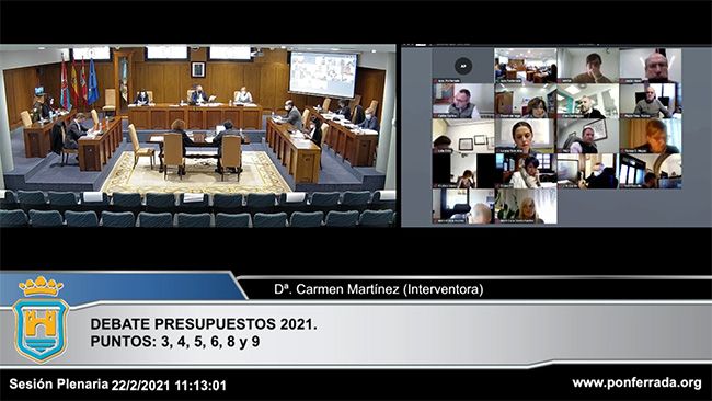 El alcalde de Ponferrada, Olegario Ramón (I), junto al portavoz del grupo Popular, Marco Morala (D), durante el pleno de presupuestos en el Ayuntamiento de Ponferrada (Foto: César Sánchez / ICAL)El Ayuntamiento de Ponferrada ha celebrado este lunes un pleno extraordinario con el punto primordial de debatir los presupuestos municipales del ejercicio de 2021. La sesión plenaria, que se desarrolló con la participación mayoritaria de los concejales de manera telemática, dio luz verde a una partida global de 62,5 millones de euros, con una inversión real superior a los 5 millones.