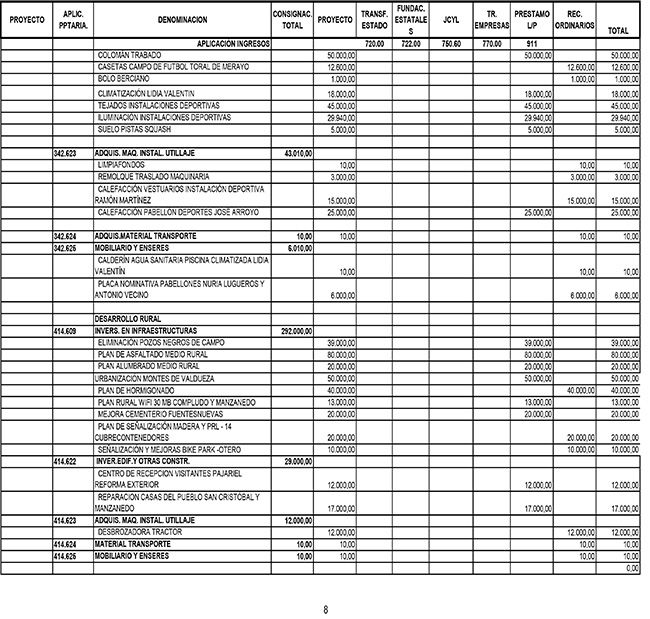 La partida inversora de 5,4 millones contempla la puesta en marcha de proyectos de amplio calado, entre los que destacan las actuaciones medioambientales de creación de nuevas superficies forestales y huertos urbanos, tales como el Bosque Urbano que se ubicará en los terrenos de la Montaña de Carbón. Además, el proyecto presupuestario recoge también un plan de asfaltado, así como la ampliación y mejora de la iluminación en colegios, pasos de peatones, instalaciones deportivas y un plan de alumbrado en el medio rural. El presupuesto también prevé la remodelación de las pistas de atletismo del estadio Colomán Trabado, las cubiertas de varias instalaciones deportivas, instalación de un sistema de climatización en el pabellón Lydia Valentín y de calefacción para el pabellón José Arroyo y en los campos Ramón Martínez. Por otro lado, el proyecto de presupuesto también recoge un incremento en la partida de Educación, con renovación de las instalaciones térmicas en colegios como San Antonio, La Borreca, Campo de la Cruz o Navaliegos. En la Biblioteca Municipal se reforzará la climatización de la segunda planta y se acometerá la renovación de los equipos informáticos.