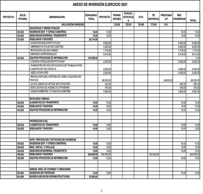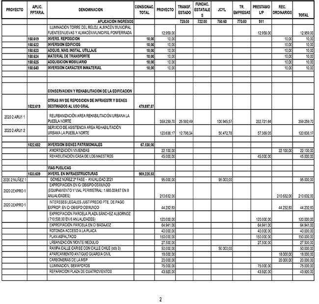 *El anexo íntegro de inversiones de los presupuestos de Ponferrada para 2021 se adjunta al final de esta noticia.