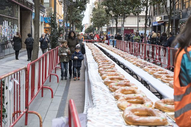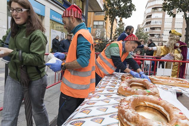 Al comienzo del reparto del Roscón de Reyes asistió el concejal de Comercio, Carlos Fernández, quien comprometió el apoyo municipal para mejorar los resultados del sector, que sin solución de continuidad empieza el domingo la campaña de rebajas con la apertura de las tiendas y descuentos de hasta el 50%.
