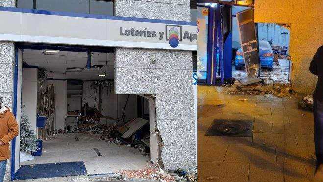 Ponferrada / Un coche se empotra contra la administración de Lotería de la Glorieta del Cine destrozándola por completo