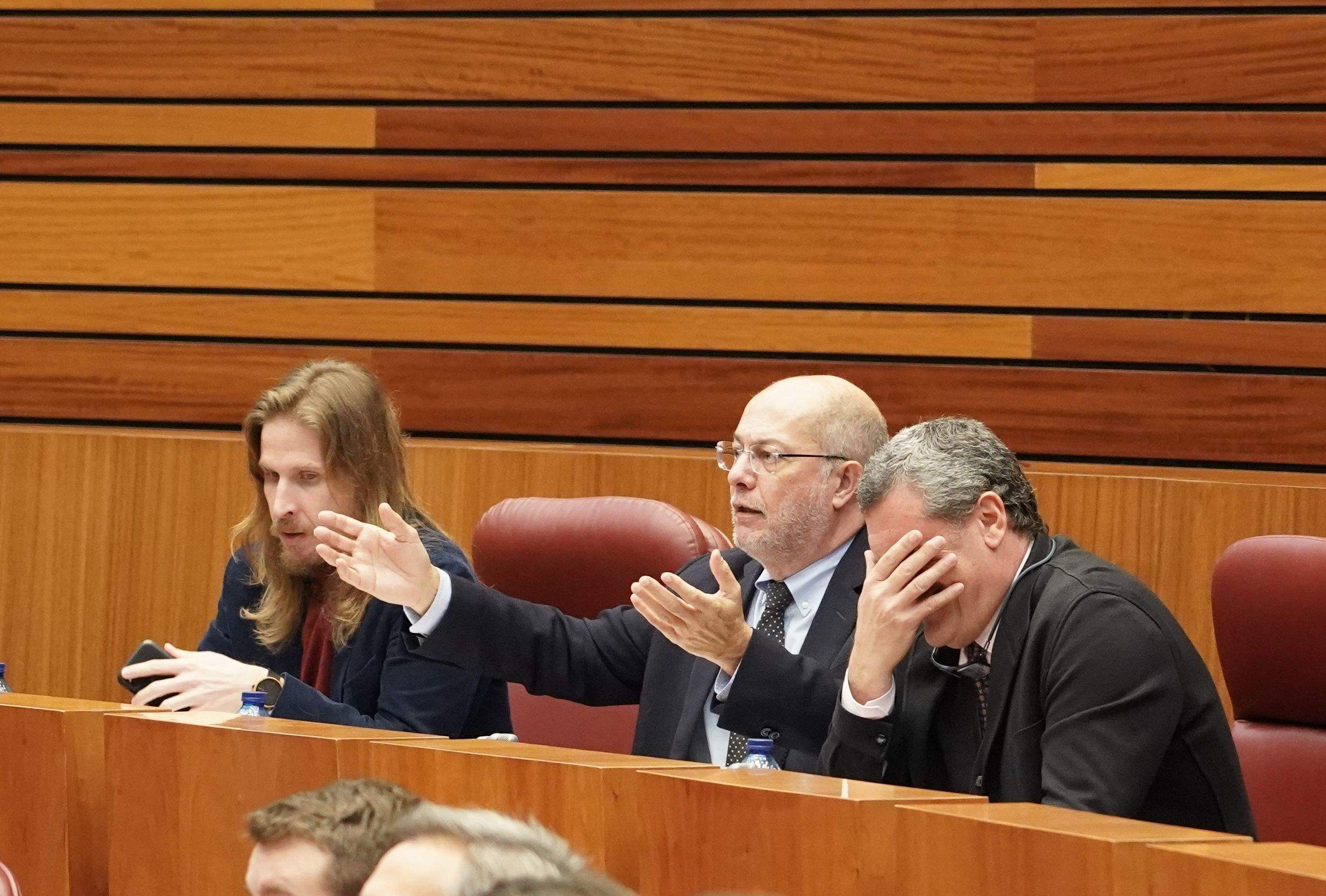 Los componentes del Grupo Mixto Pablo Fernández, Francisco Igea y Pedro Pascual, durante la segunda sesión del Pleno de los Presupuestos Generales de la Comunidad para 2023