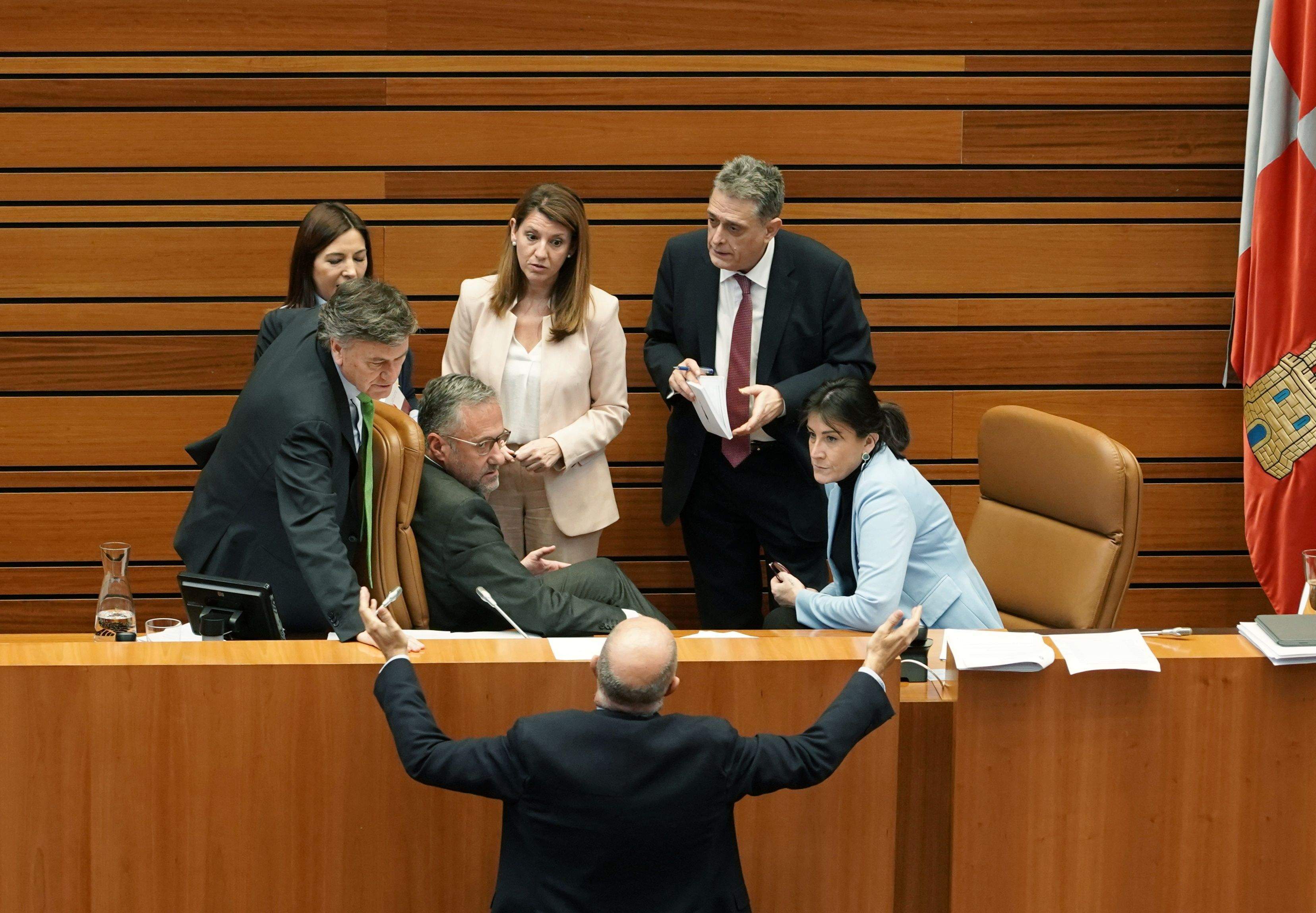 El pleno monográfico de presupuestos, que cierra este periodo de sesiones en las Cortes, estuvo suspendido durante más de dos horas, después de que en la votación de las 78 enmiendas socialistas a la ley de medidas se registrara 66 votos a favor (PP, Vox y PSOE), cuatro en contra (Cs y tres miembros del PP) y siete abstenciones (UPL-Soria Ya y Por Ávila).