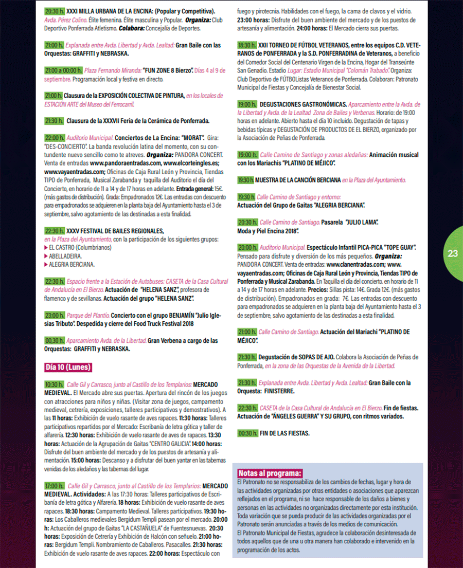 En cuanto a la única sesión de fuegos artificiales que se celebrará durante las fiestas, será el viernes 7 a las 23.50 horas en el entorno del Puente del Centenario. A cargo de Pirotecnia PiBierzo.