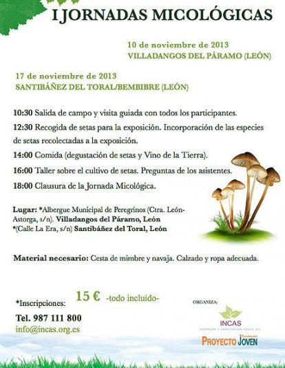La Fundación ‘Proyecto Joven’ y su empresa de emprendimiento social ‘INCAS’ (Inserción y Capacitación Social) organizan con la colaboración de ‘IRMA’ (Instituto de Restauración y Medio Ambiente) las I Jornadas Micológicas.