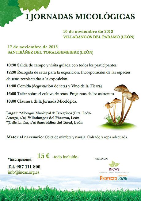 La Fundación ‘Proyecto Joven’ y su empresa de emprendimiento social ‘INCAS’ (Inserción y Capacitación Social) organizan con la colaboración de ‘IRMA’ (Instituto de Restauración y Medio Ambiente) las I Jornadas Micológicas.