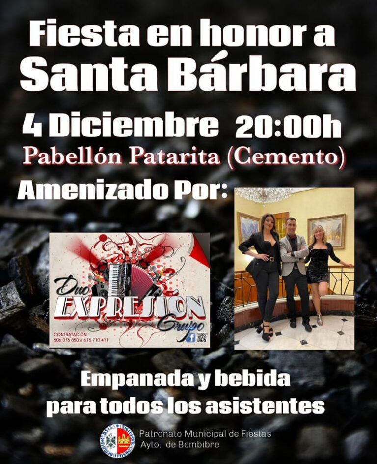 Bembibre celebra una fiesta en honor a Santa Bárbara este domingo, 4 de diciembre, desde las 20 horas. Con empanada y bebida para todos los asistentes, y amenizado por el Duo Expresión, el Bierzo Alto rinde tributo a esta festividad tan especial en la Comarca. Para más información pincha AQUÍ.