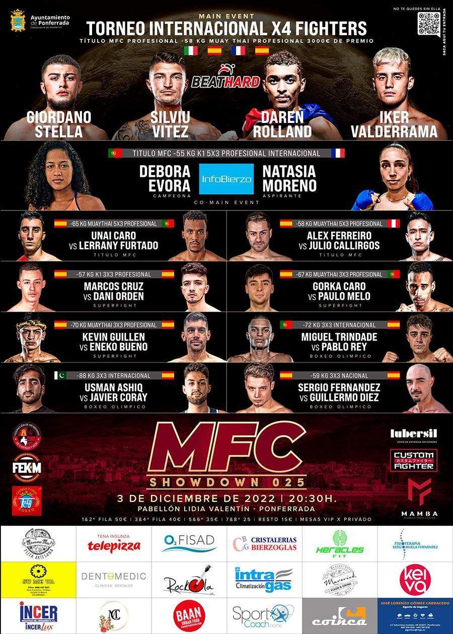 Una cita liderada por Mamba Fight Club, y que recibe el nombre de MFC Showdown 025 “Ponferrada a los ojos del mundo”. Una jornada nocturna deportiva que contará con diferentes partes, participantes comarcales, provinciales, nacionales e internacionales, como también estará conformada por varias categorías de competición. Para más información pincha AQUÍ.
