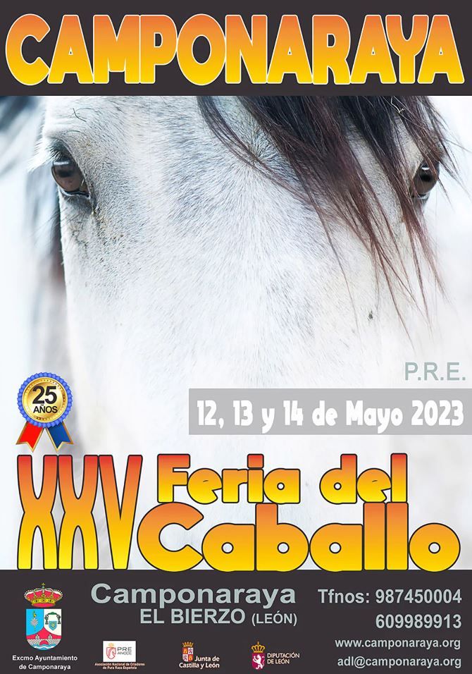 Camponaraya soplará los 25 años de la Feria del Caballo desde el 12 al 14 de mayo con un amplio programa que contará con 80 ejemplares equinos pura raza. Una cita berciana ya «consolidada en el escenario nacional», tal y como afirma el regidor del municipio, Eduardo Morán, durante la presentación de la cita junto a la edil de Ferias de Camponaraya, Amparo Valtuille. Para más información pincha AQUÍ.
