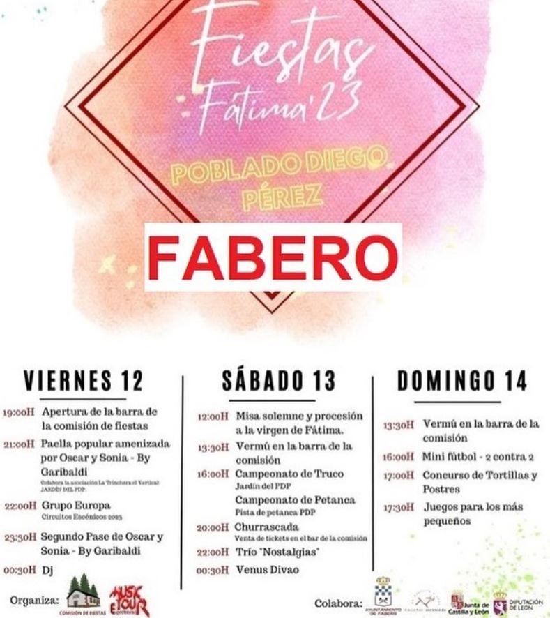 Fiestas en honor a Fátima, los días 12, 13 y 14 de mayo.