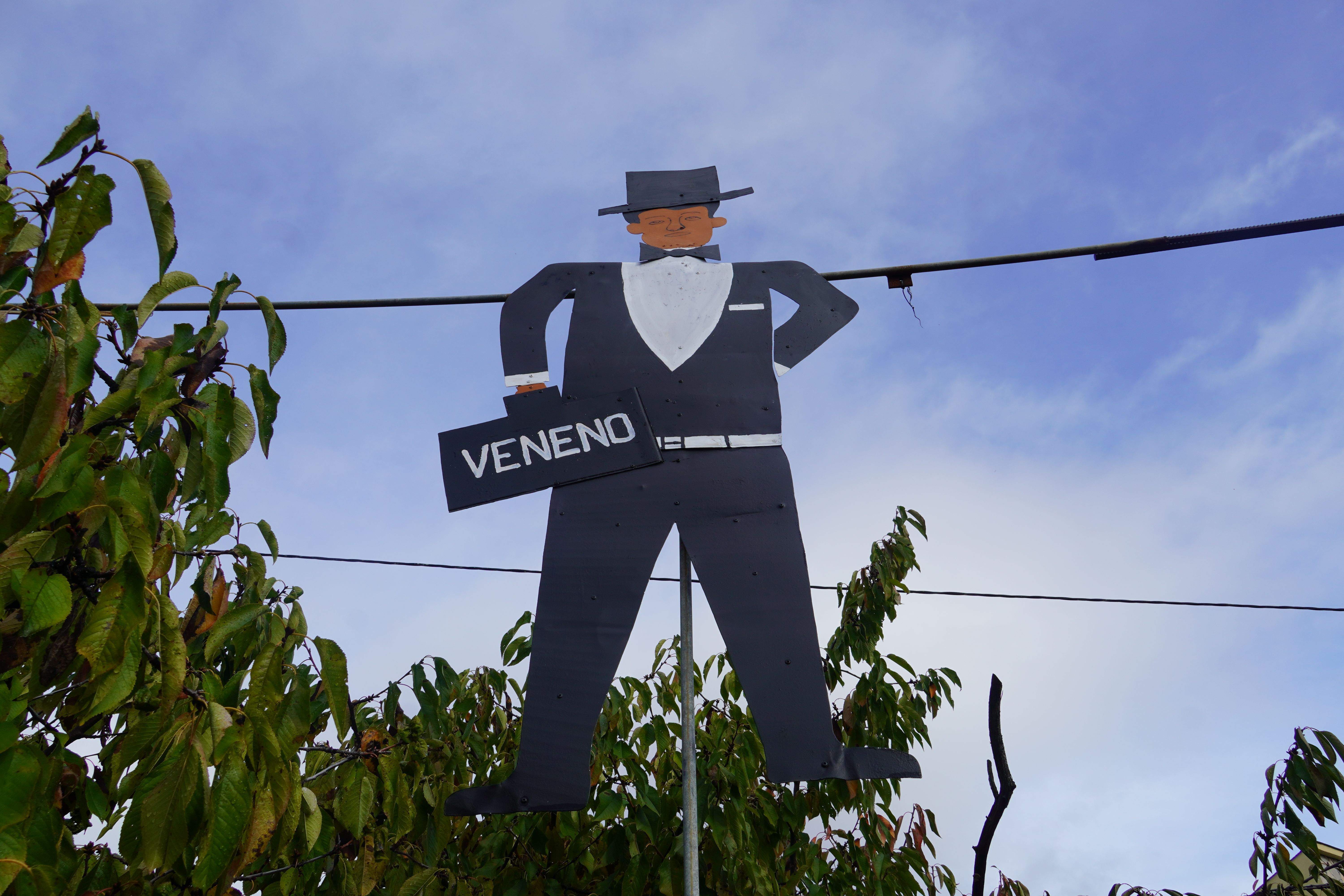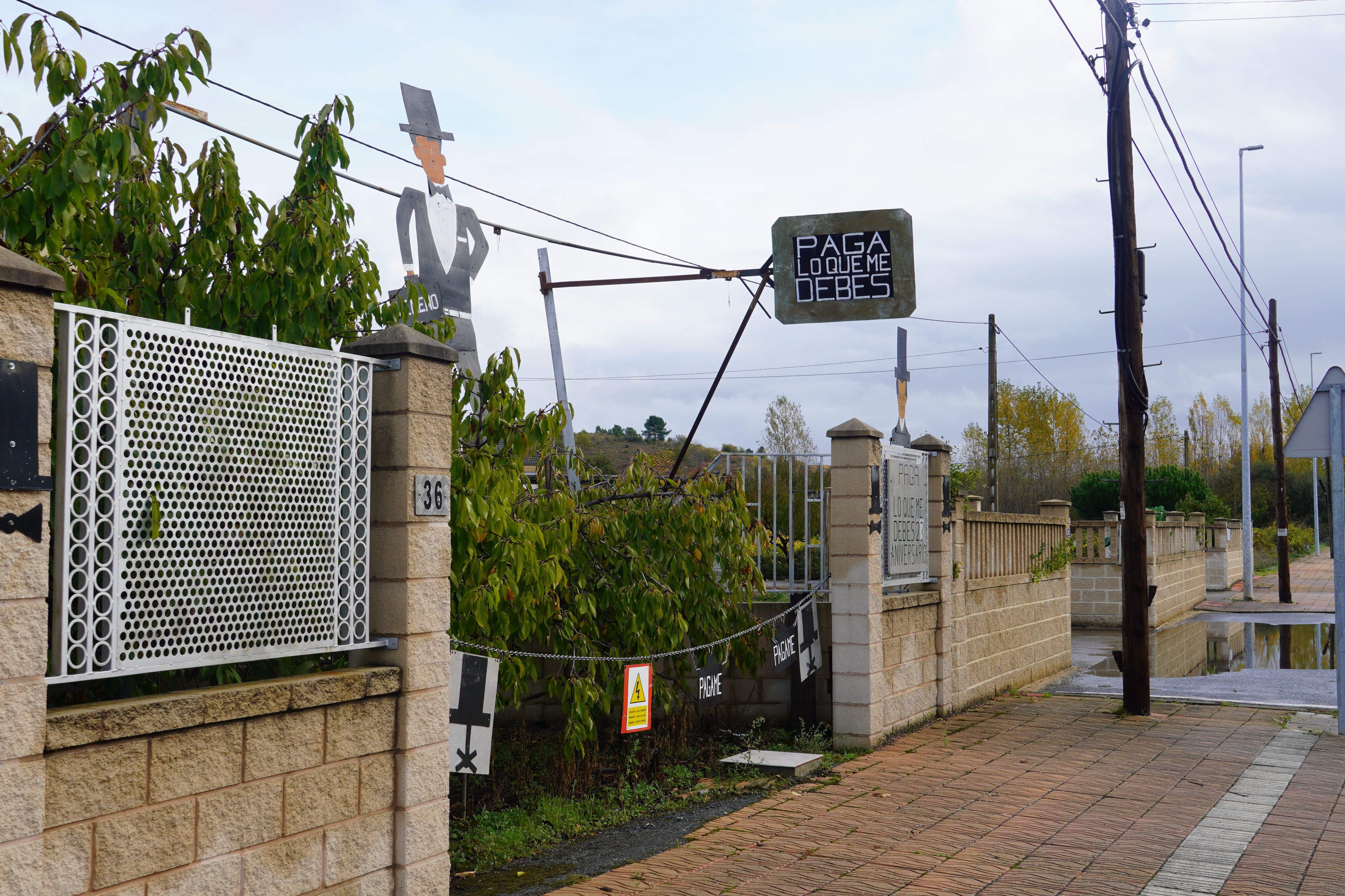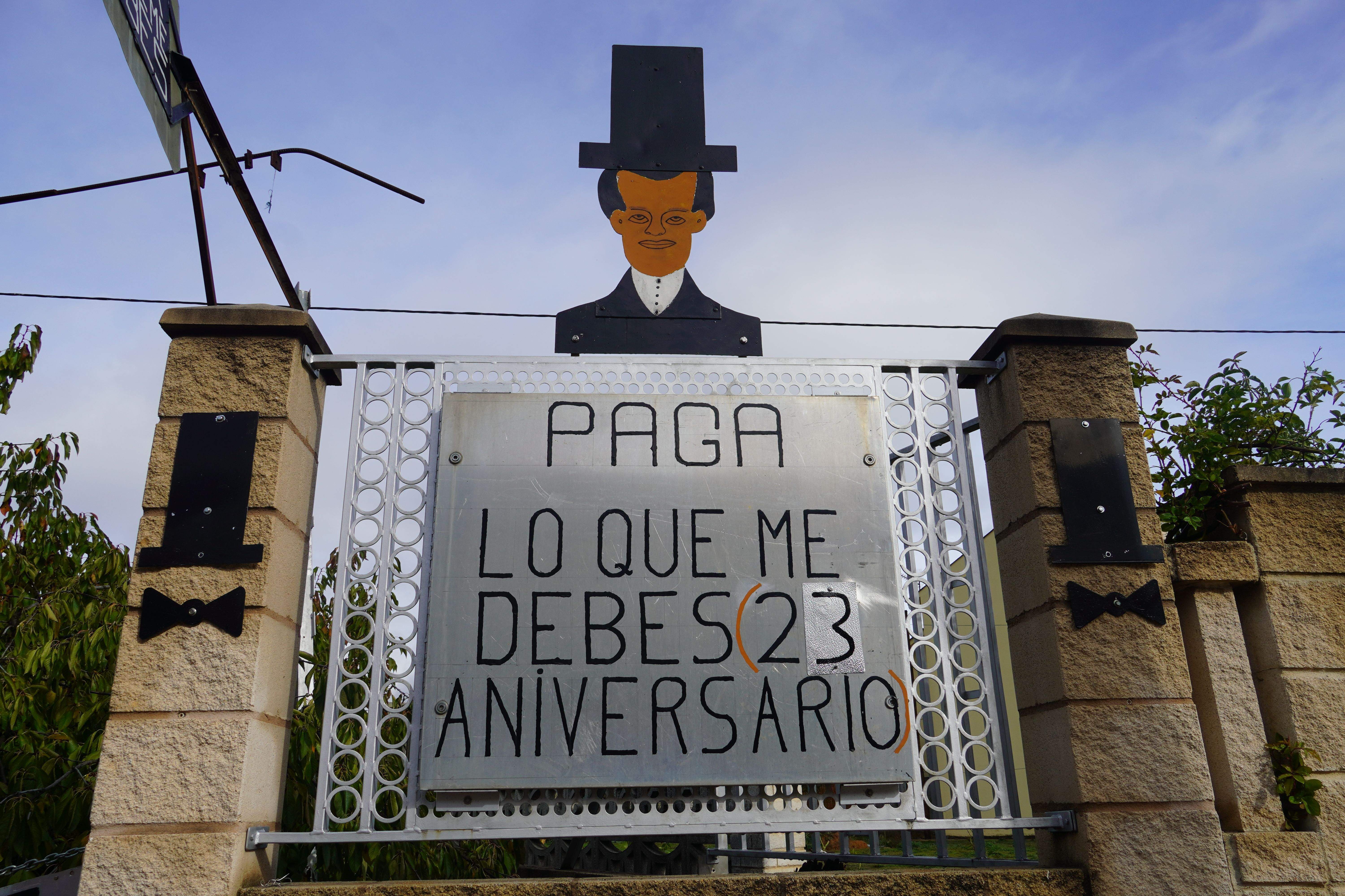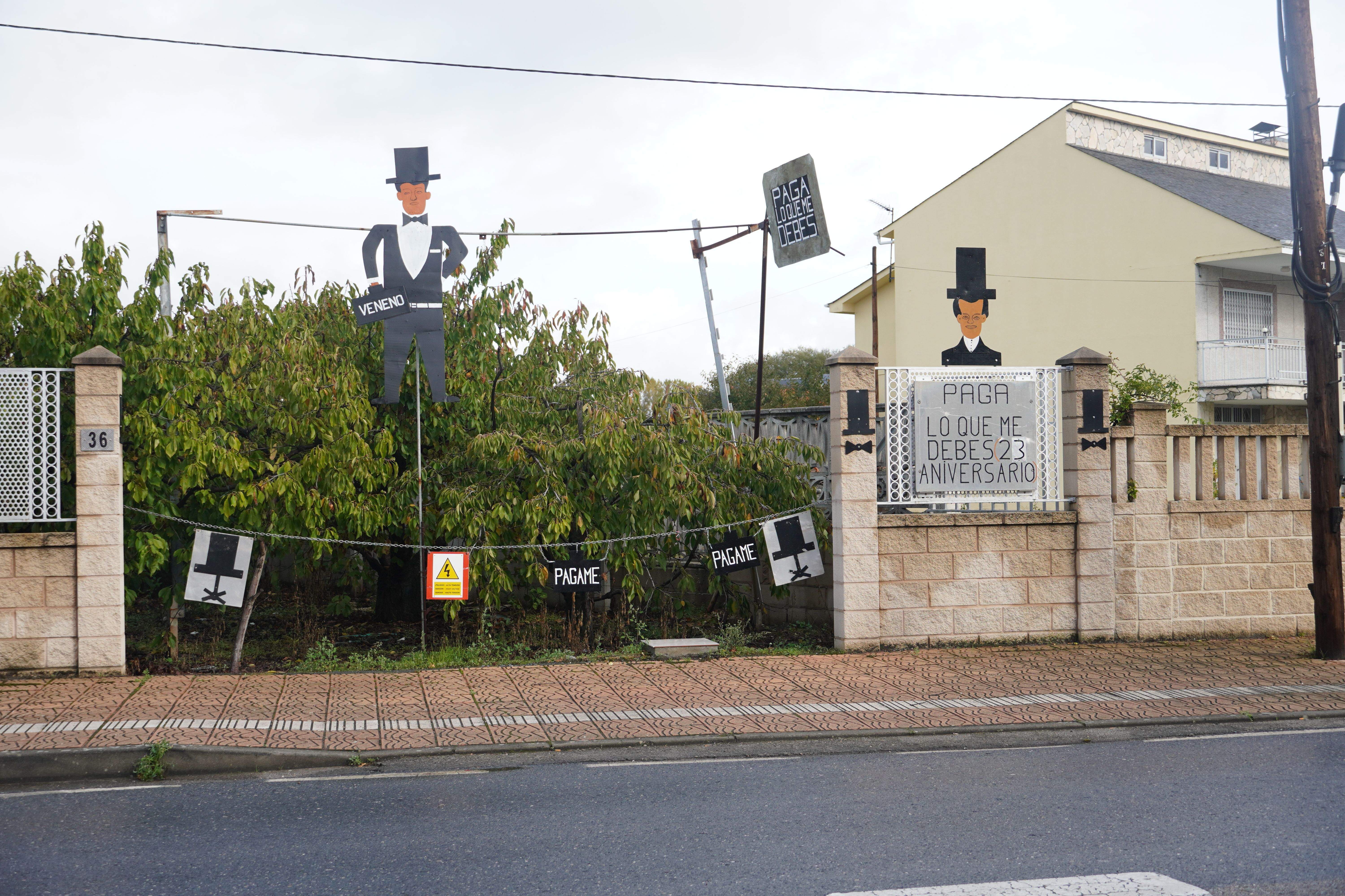 Se trata de una parcela cuyo propietario vendió en parte a un familiar del pueblo, a fin de que el bien querido vecino pudiese edificar o cerrar la parcela, cosa que en parte hizo, pero sin pagar presuntamente el precio estipulado y acordado. Desde entonces, y superada la vía de reclamaciones y embargo sobre el terreno precisamente en disputa, el cartel en la finca 'adelgazada' es lo que le queda a quien se siente agraviado para recordarle al "morador", que habría faltado a su palabra.