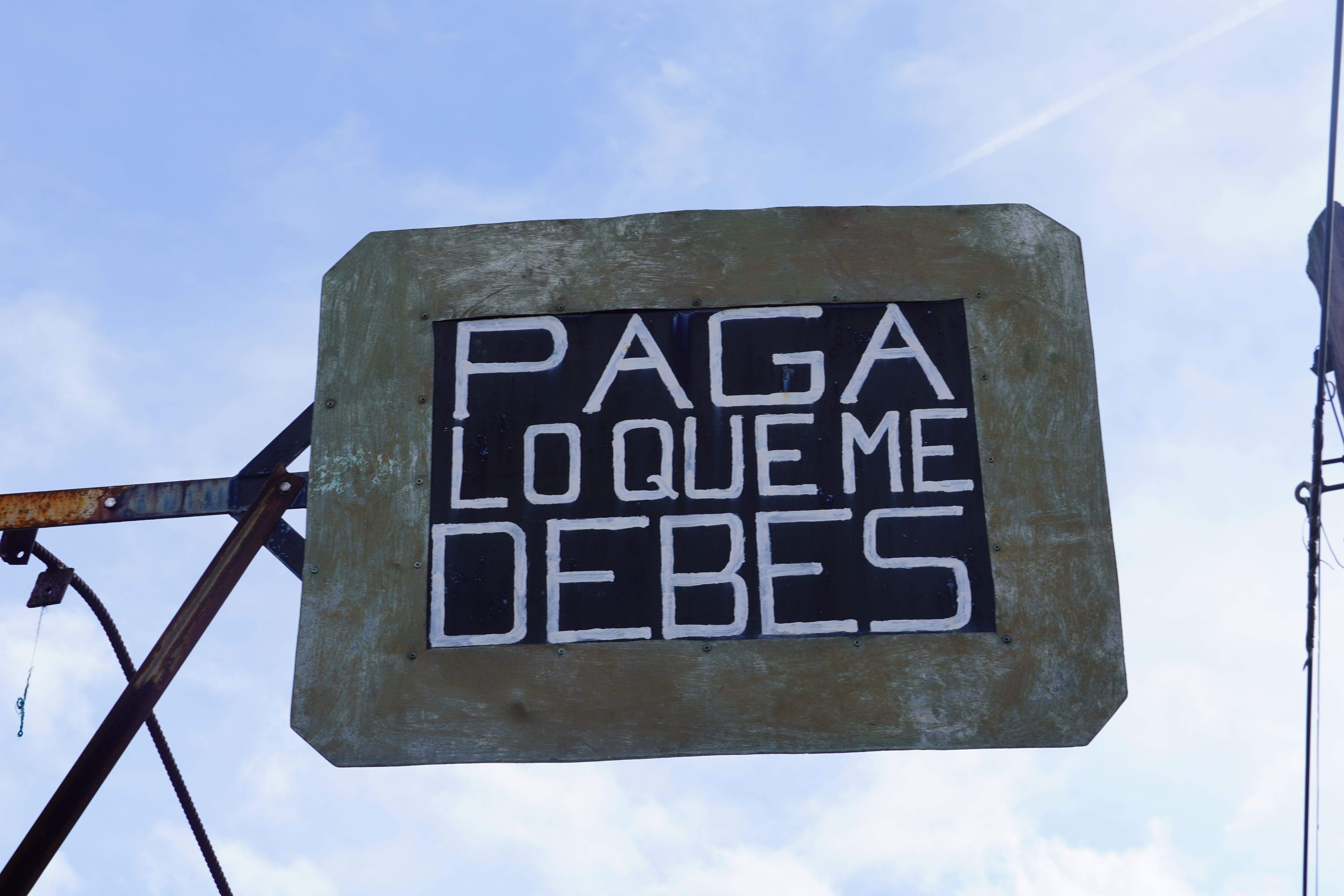 La vista siempre se viene a esa finca bien adornada con carteles, monigotes del cobrador del frac, y el imperativo 'paga lo que me debes'. No es una proclama bíblica para cumplir siempre con nuestros deudores... No; la historia es más terrenal (de terreno), pero que viene de lejos.