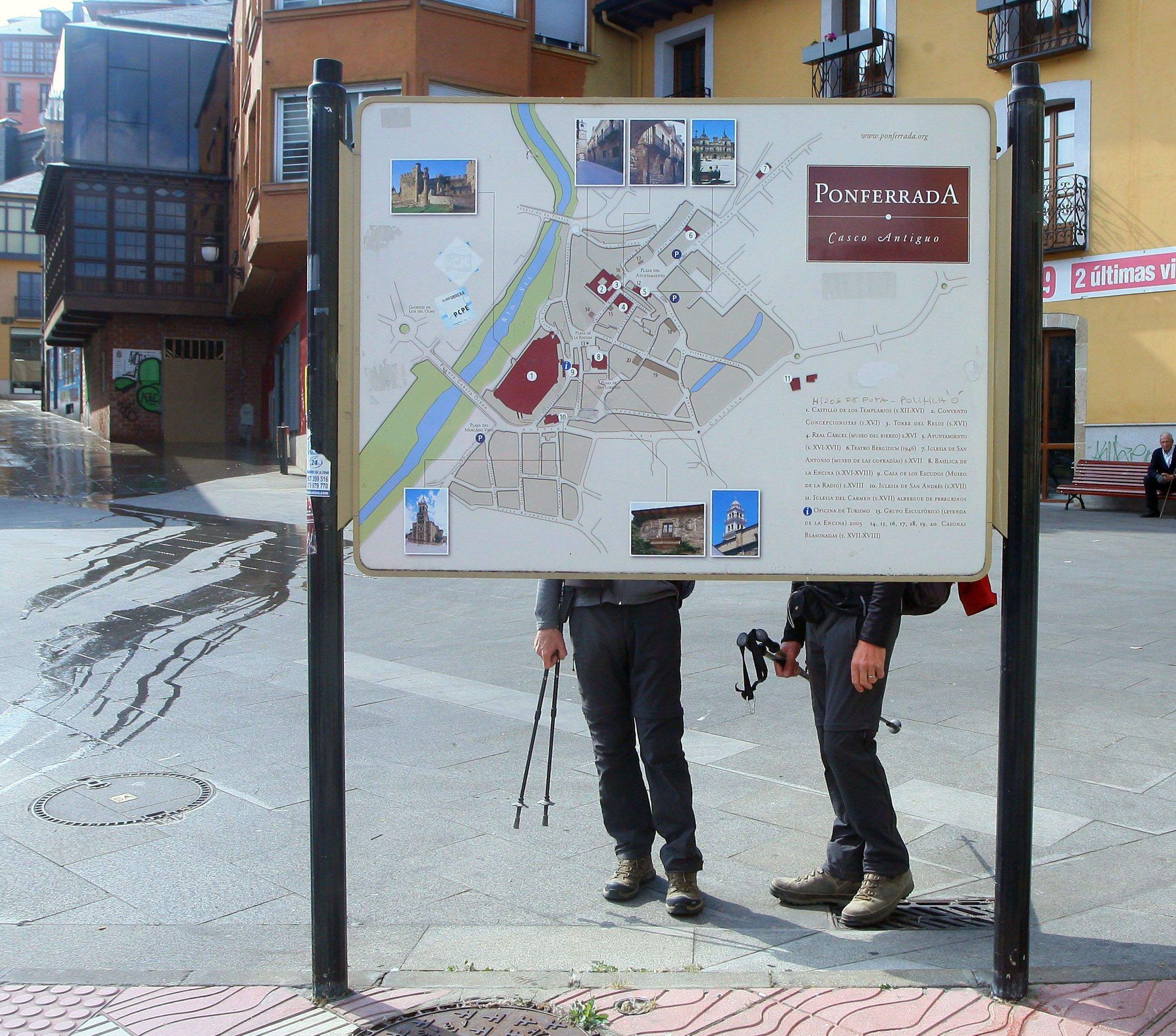 Vista del casco histórico de Ponferrada desde el pueblo de OteroLa capital del Bierzo tiene muchos lugares de interés turístico para visitar entre los que destacaremos los más importantes que debes descubrir si vienes a la ciudad. Se encuentra en el oeste de la provincia y, tras León, Ponferrada es la población más importante en cuanto a relevancia social, política y económica, además de por número de habitantes. El nombre de Ponferrada procede de "Pons-Ferrata", que quiere decir puente de hierro, debido a que en el siglo XI se construyó esta vía de paso para los peregrinos porque la ciudad era, y sigue siendo, un punto destacado en el Camino de Santiago. Aunque una reciente teoría de estudio sugiera que se refiere más a Puente Cerrado, en referencia al principal puente que atravesaba la ciudad, paso del Camino de Santiago, y que constaba de 2 puertas 'cerradas' salvo paso por diezmo del foráneo.