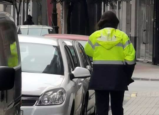 Los empleados que controlan el aparcamiento de pago en la ciudad continúan con su trabajo, a pesar de las recomendaciones y medidas implementadas por las administraciones superiores para evitar el contagio del Coronavirus.