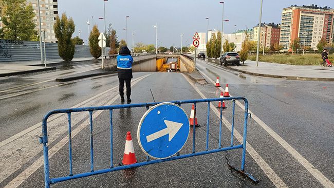 La intensa lluvia que acompaña a Ponferrada durante la mañana de este sábado ha producido algunos altercados en los pasos inferiores de la ciudad, como ya es habitual cuando se dan estas situaciones. Así, el paso subterráneo de la Avenida Constitución de La Rosaleda estaba cerrado por unas "infiltraciones", como ha confirmado Oliver Bao, jefe del Servicio de Bomberos de Ponferrada a InfoBierzo.