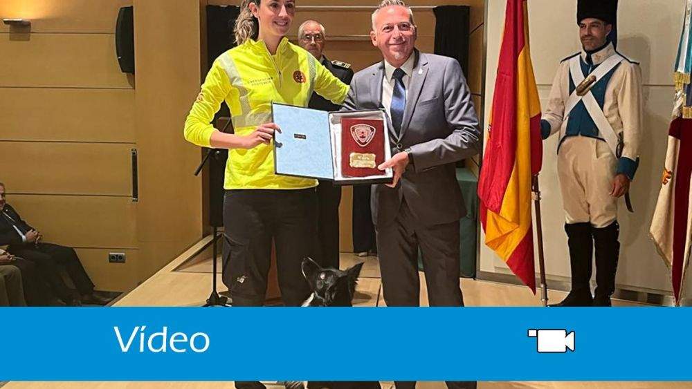 Taco, uno de los miembros de la unidad canina de búsqueda de personas desaparecidas de PROTEMER (Asociación Nacional de Protección y Emergencias) con base en el Bierzo, junto con su guía Marta, han sido la mañana de este jueves reconocidos en el acto con motivo de la festividad de San Miguel Arcángel, Patrono del Cuerpo de la Policía Municipal, por localizar el 3 de diciembre a un hombre desaparecido de 74 años.