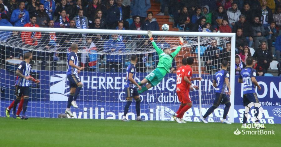 Manu evita el empate después de que Yac despejara contra su portería un centro peligroso de Moha desde la izquierda. A punto de marcar en el rechace el propio Moha.