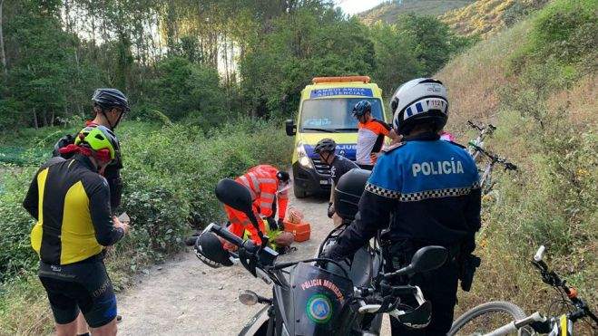 Del suceso ocurrido ayer jueves sobre las 20:30 horas, han dado cuenta este viernes los efectivos de la Policía Municipal de Ponferrada, quienes han colaborado con los Servicios Sanitarios para poder llegar a este lugar de difícil acceso donde se había accidentado un ciclista de 45 años en el camino que bordea el Pajariel.