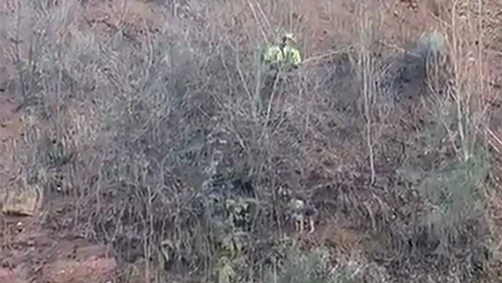 Para el rescate del animal, que duró una hora, fue preciso realizar un descenso con cuerda de unos 15 metros en casi vertical y el posterior ascenso con un sistema de poleas. En un primer momento, el perro no presenta daños aparentes.