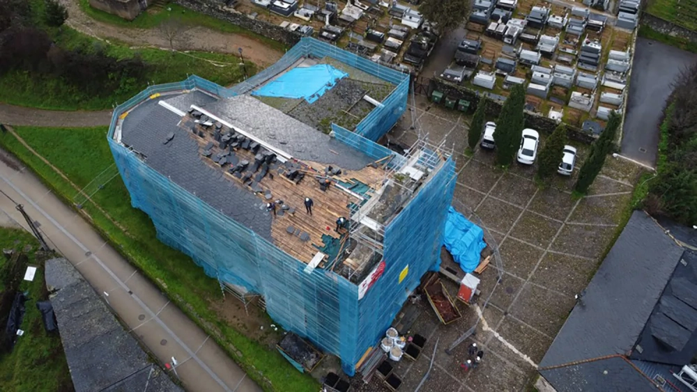 En paralelo, durante las próximas semanas se seguirá trabajando en la restauración de elementos pétreos singulares del ábside románico y en la ejecución de una cámara de ventilación en la vertiente meridional que se encuentra soterrada. Está previsto que las obras terminen definitivamente en julio, tras una inversión total de 410.929 euros. El objetivo ha sido la recuperación de las condiciones de estanqueidad y la puesta en valor de este templo del siglo XII, clave del románico leonés y uno de los símbolos jacobeos.