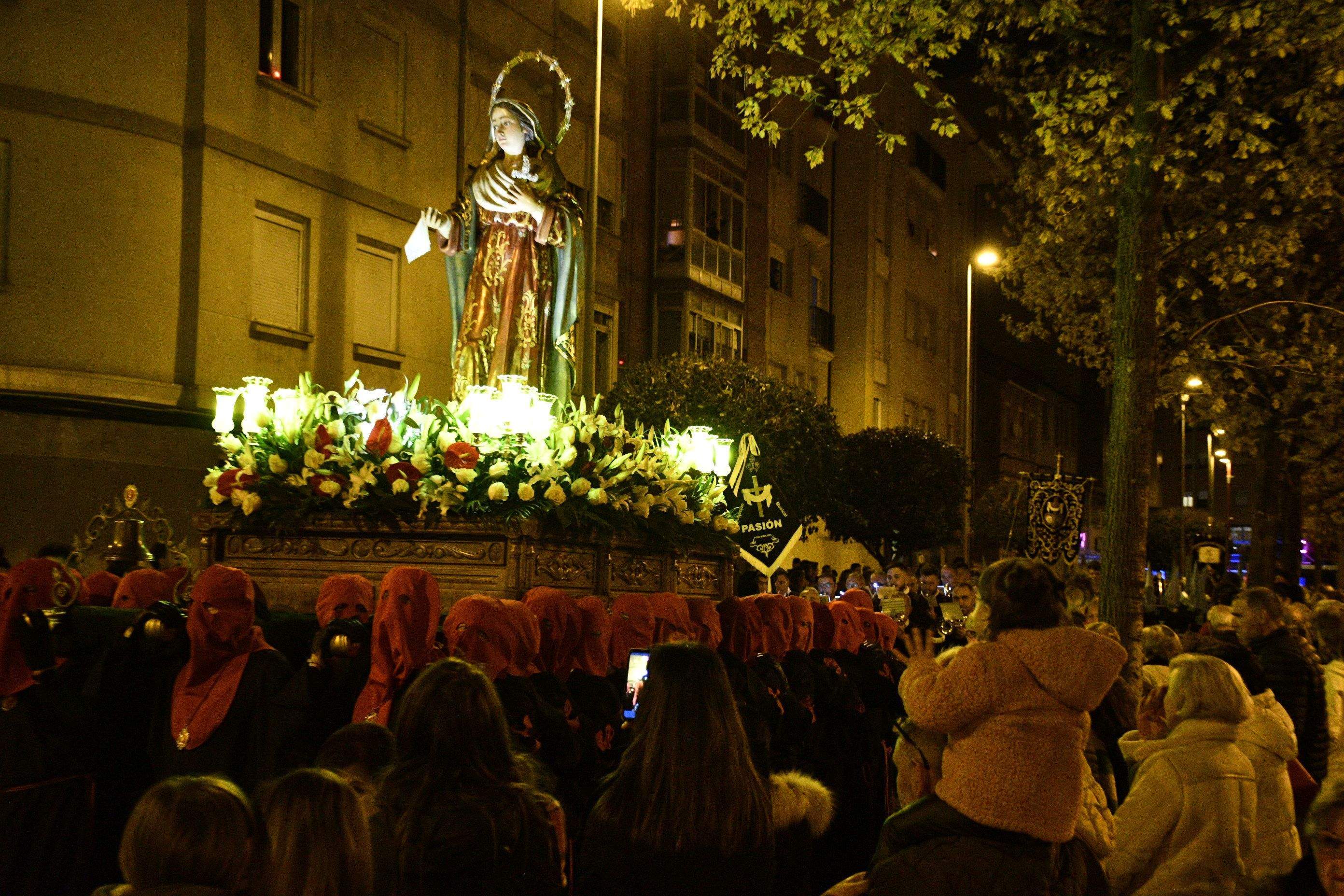 Así se vivió el emotivo encuentro entre el Cristo y la Virgen en Flores del Sil este miércoles. La Cofradía de Santiago Apóstol organiza la que es una de las procesiones destacadas de Ponferrada, y la referente del barrio de Flores del Sil.