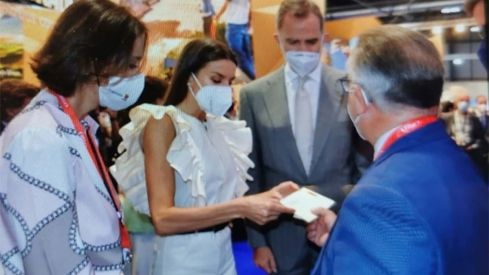 Vila ha hecho esta entrega a don Felipe y doña Letizia de su invitación aprovechando su recorrido por la Feria Internacional de Turismo (Fitur) en Madrid