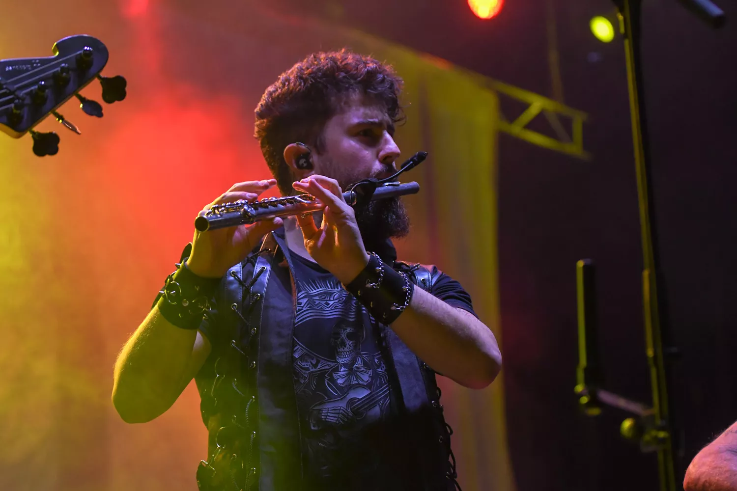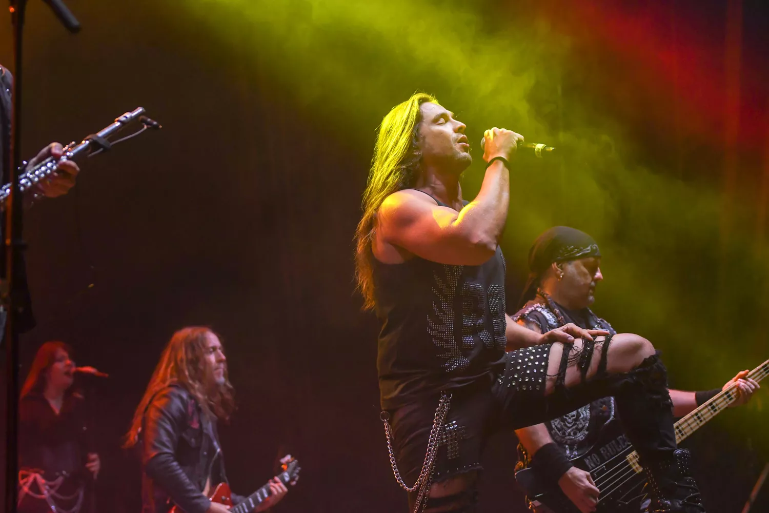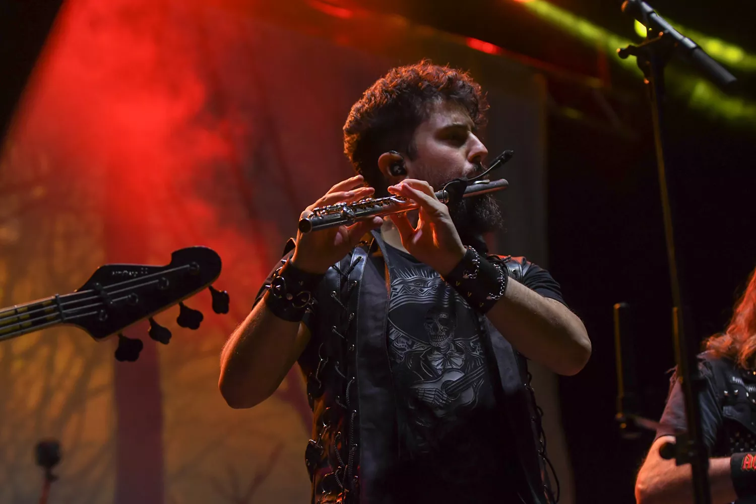 Rafa Blas, lejos de enfriarse, retomó el concierto exactamente donde lo dejó, con la frase final de “La venganza de Gaia” y, con ironía, dijo: “a ver si esto va a ser cosa de los Kabrones” (el grupo fundado por ex componentes de Mago de Oz).