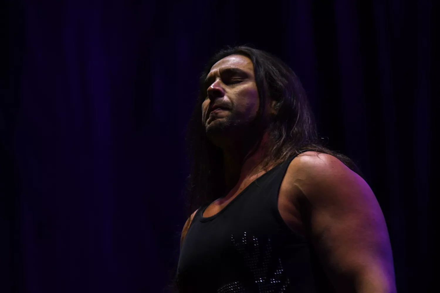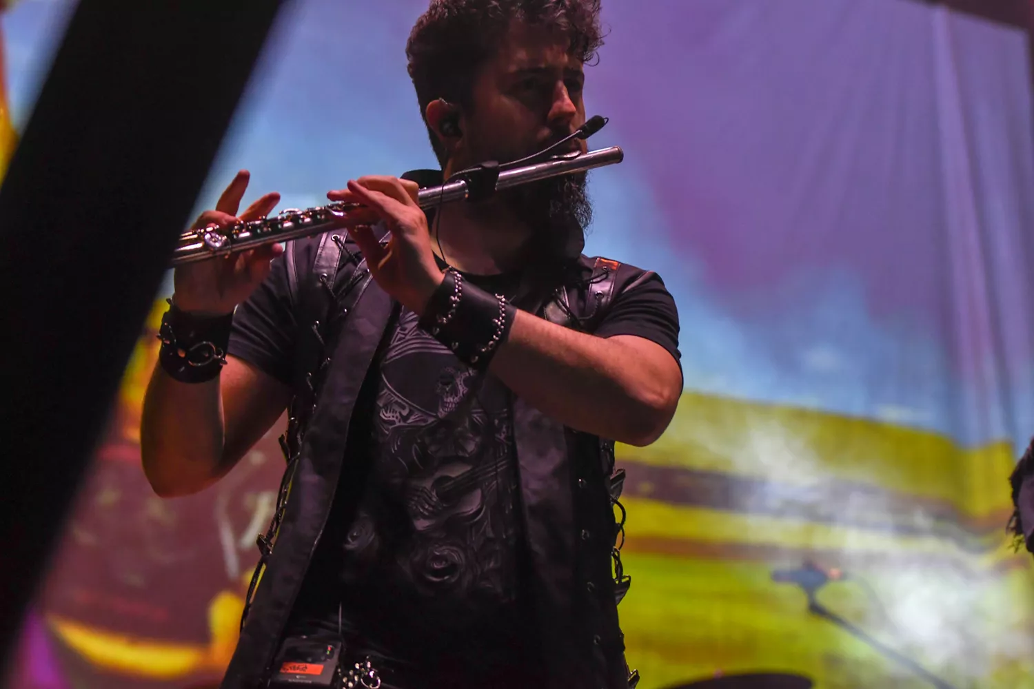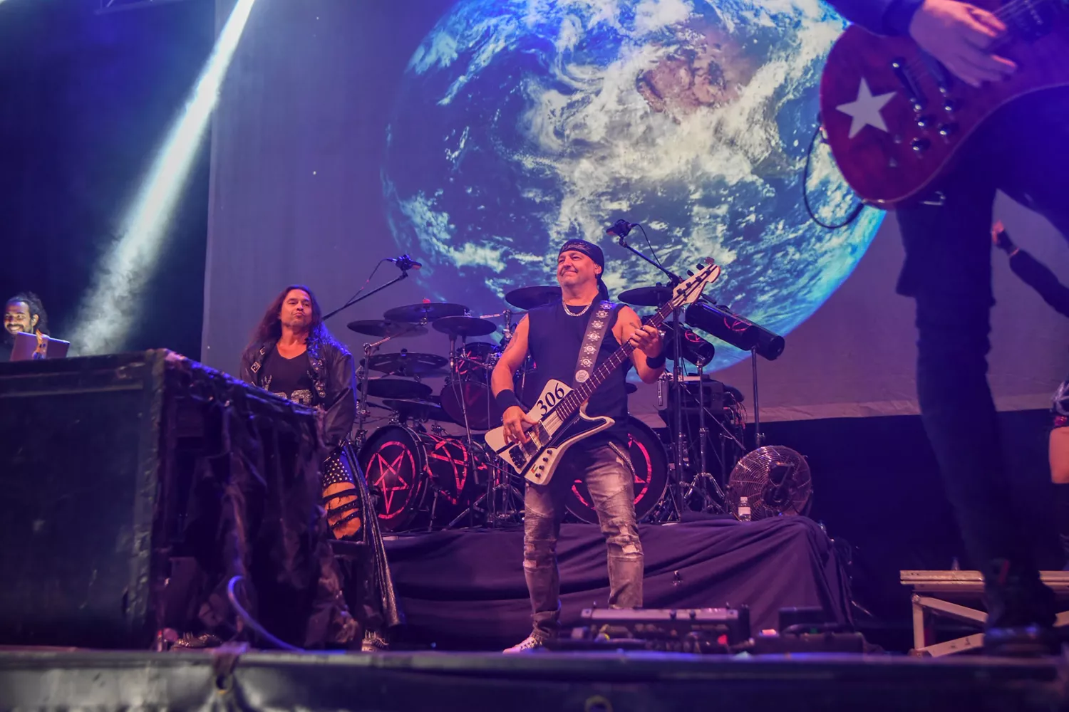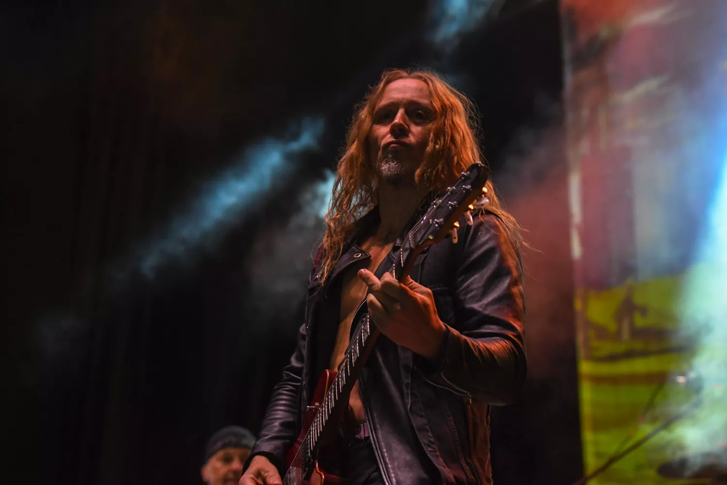 Rafa Blas, lejos de enfriarse, retomó el concierto exactamente donde lo dejó, con la frase final de “La venganza de Gaia” y, con ironía, dijo: “a ver si esto va a ser cosa de los Kabrones” (el grupo fundado por ex componentes de Mago de Oz).