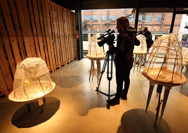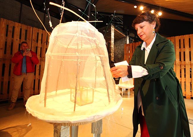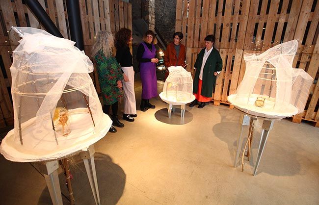 La directora del Museo de la Energía, Yasodhara López, presenta la exposición ‘Seda. Ciencia y arte en movimiento’, acompañada de la concejala de Cultura de Ponferrada, Concepción de Vega, y de la responsable del proyecto artístico, Reme RemediosProgramación cultural con talleres para todos los públicos