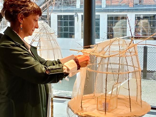 La directora del Museo de la Energía, Yasodhara López, presenta la exposición ‘Seda. Ciencia y arte en movimiento’, acompañada de la concejala de Cultura de Ponferrada, Concepción de Vega, y de la responsable del proyecto artístico, Reme RemediosDesde esta mañana se puede visitar en La Fábrica de Luz. Museo de la Energía la exposición SEDA [ciencia y arte en movimiento], una instalación artística especialmente pensada para su creación en Ponferrada y que será una estructura hogar para la cría de los gusanos de seda y para la expresión del proceso creador. Este proyecto artístico de Reme Remedios en colaboración con Enriqueta Pérez Mora se trata de una obra de arte colectiva y colaborativa, donde la interacción se extenderá más allá de los gusanos y unirá a personas, especies y espacios. Así, la necesidad de conseguir alimento madre, la hoja de morera, llevará a los asistentes desde La Fábrica de Luz. Museo de la Energía hacia el jardín del conservatorio Cristobal Halffter en el que se promoverá encuentro y acción en la llamada “ruta de la morera”.