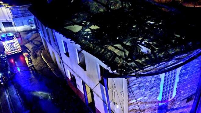 A la llegada, la cubierta ya había colapsado como parte del forjado del bajo cubierta, ambos construidos con madera. La detección del incendio se produce cuando un vecino escucha el chasquido de las pizarras, por lo que el incendio ya se encontraba muy desarrollado.