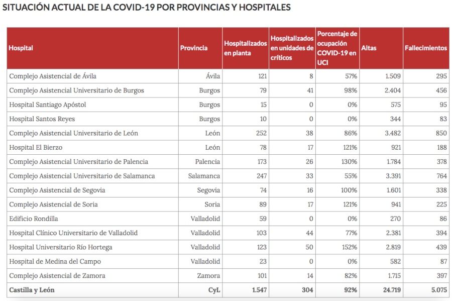 En cuanto a la situación en el Hospital El Bierzo, continúa la pugna entre los nuevos ingresos (11 más este jueves) y las altas (10 hoy, hasta el total de 921). Asimismo, hay que lamentar un fallecimiento por coronavirus en el complejo hospitalario berciano, con lo que el total asciende a 188 decesos desde el inicio de la pandemia.