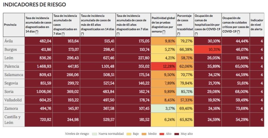 Por lo que respecta al índice de riesgo en Ponferrada, la incidencia acumulada de casos diagnosticados por cada 100.000 habitantes en los últimos 14 días es de 396,84 y a siete días se encuentra en 130,21. La positividad global de las pruebas diagnosticadas por semana es del 9,75%.