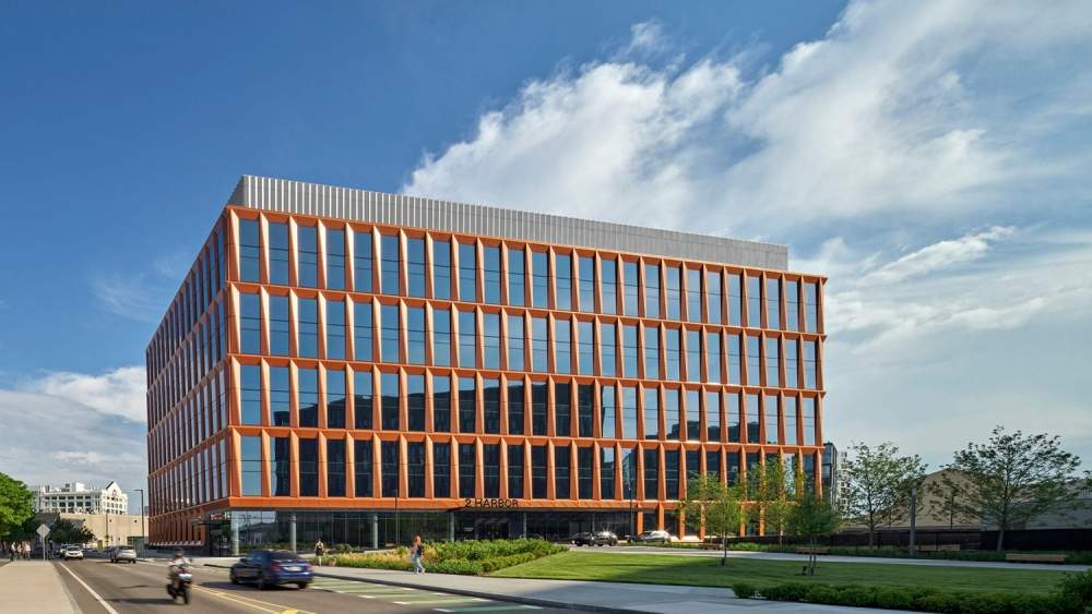 2 Harbor es un nuevo complejo de 46.500 metros con certificación LEED Platino, diseñado para reflejar el carácter de los edificios industriales marinos circundantes. La fachada está compuesta por paneles de metal corrugado con bandas metálicas de color cobre. Grandes ventanales con triple acristalamiento TVITEC | Cricursa inundan de luz natural un confortable ambiente de trabajo. Laboratorios y oficinas comparten espacios en un marco que es pura sostenibilidad arquitectónica.