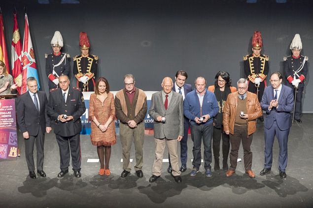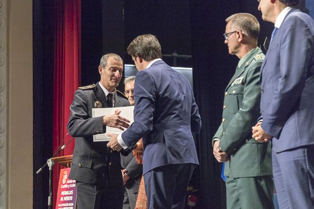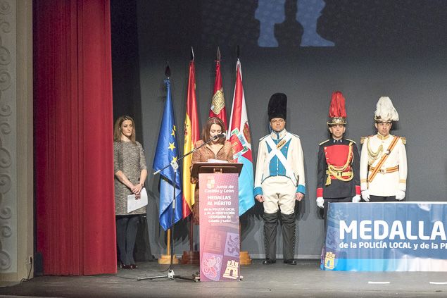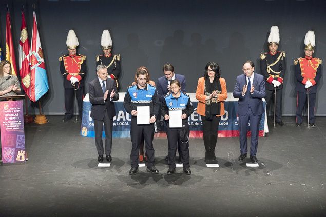 El Teatro Bergidum de Ponferrada ha acogido este martes la ceremonia de entrega de las medallas al mérito de la Protección Ciudadana y de la Policía Local de Castilla y León 2017. El consejero de Fomento y Medio Ambiente de la Junta, Juan Carlos Suárez Quiñones ha sido el encargado de hacer entrega de tres medallas de oro, dos a la Policía Local y una a Protección Civil, 17 medallas de plata, catorce a policías locales y tres a Protección Civil y doce menciones honoríficas al mérito de la Protección Ciudadana. Quiñones ha querido destacar que se trata de "un acto especialmente importante para la Junta de Castilla y León". "Ellos hacen que nos sintamos más seguros", ha dicho.