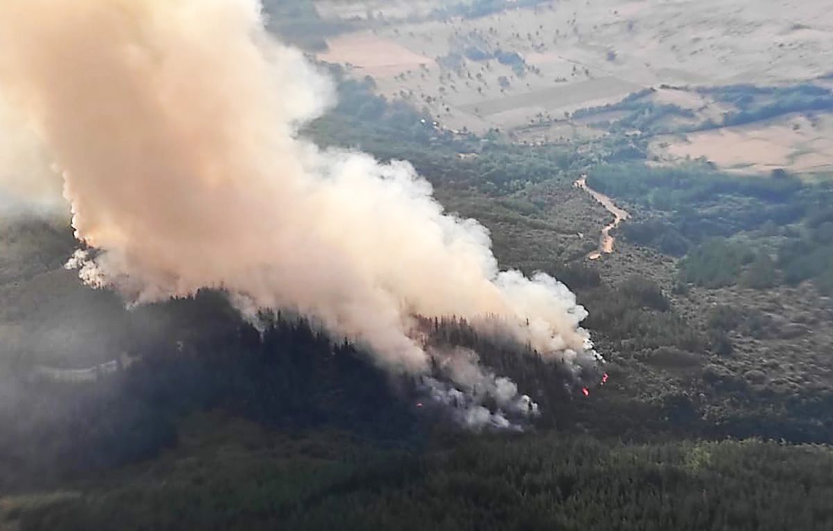 En los trabajos de extinción trabajan 2 helicópteros, 2 cuadrillas helitransportadas, 2 helicópteros y 2 cuadrillas de la BRIF de Tabuyo y un agente medioambiental.