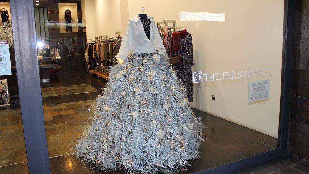 Por su parte, la boutique The End ha ganado por su vestido hecho con un arbusto, escoba de monte, que parece un árbol de navidad.