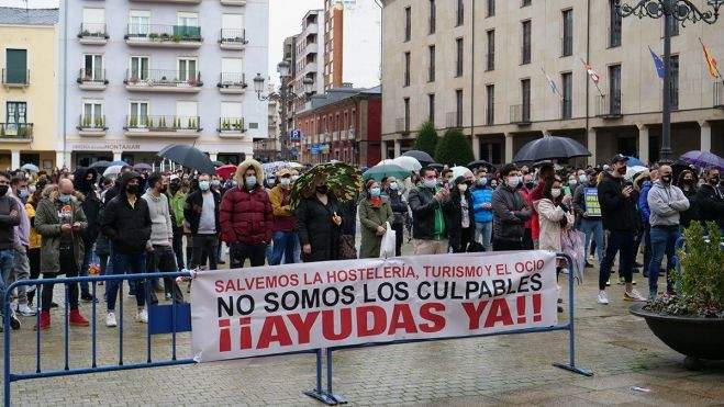 En el manifiesto leído en la plaza del Ayuntamiento de Ponferrada, los portavoces han recordado que "este domingo se están celebrando más de 500 concentraciones en todo el país, tanto para reclamar derechos y libertades fundamentales como para pedir ayudas por parte de autónomos, empresarios, hosteleros y todos aquellos que han tenido que cerrar sus negocios".