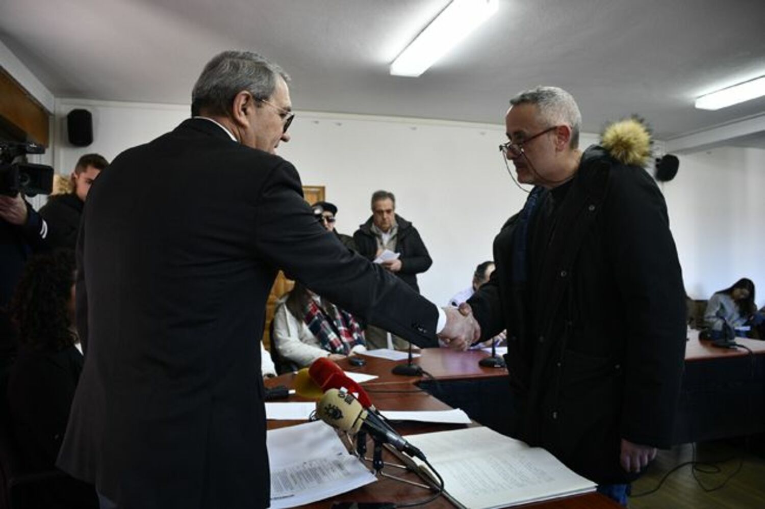 El portavoz del PP, Adolfo Canedo, preside la sesión de investidura de los 4 ediles socialistas. En la foto Canedo y Ángel Manuel Sarmiento