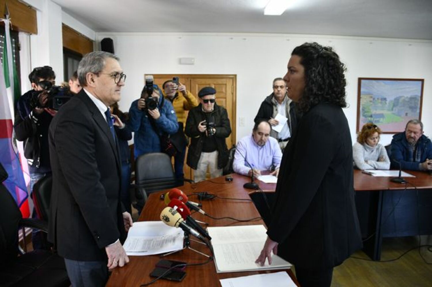El portavoz del PP, Adolfo Canedo, preside la sesión de investidura de los 4 ediles socialistas. En la foto Canedo y Tania Martínez