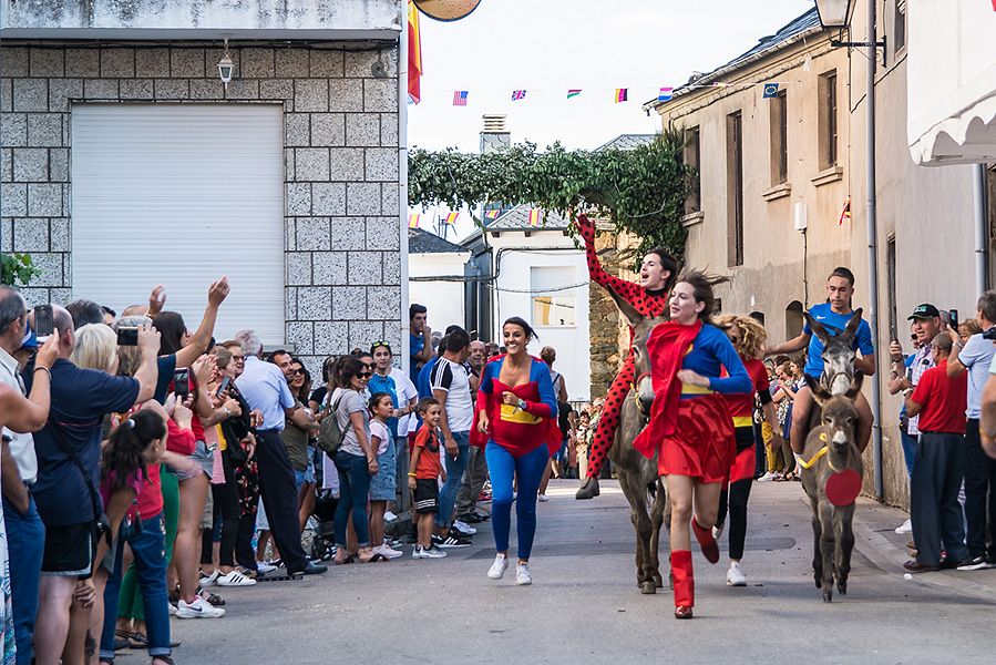 Pero no todo fue la rivalidad de la carrera. Varios participantes acudieron sin intención de competir, sino de disfrutar de la jornada y contribuir la tradición. Así, unas superheroínas o un equipo entero de moto GP también se dejaron ver en esta quincuagésima tercera edición de la carrera de burros de Noceda del Bierzo.
