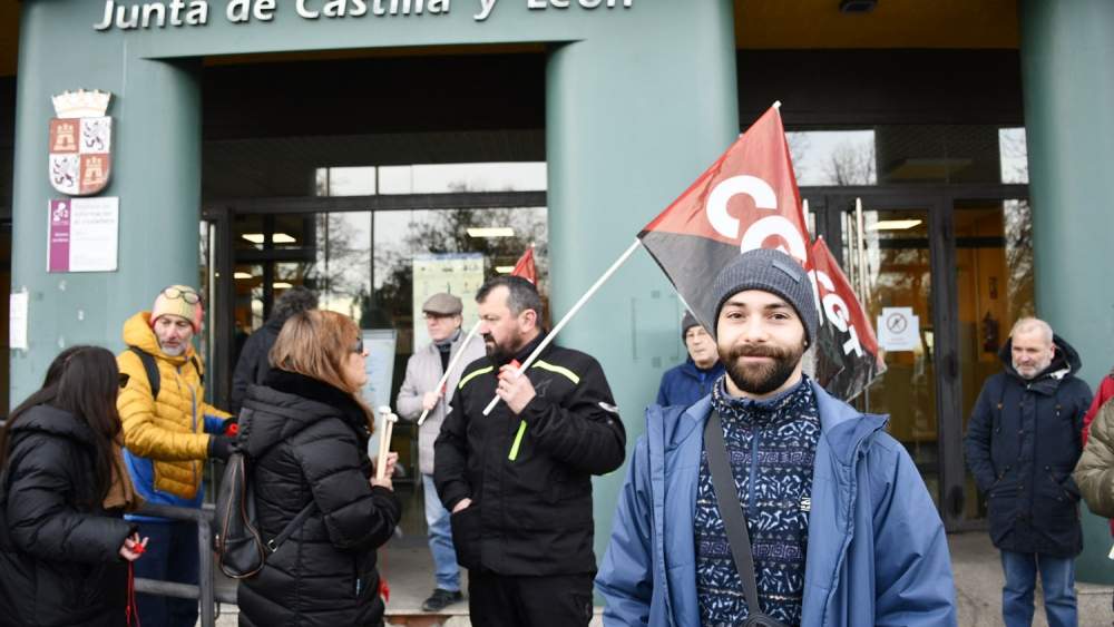 A las puertas de la sede de la Junta en Ponferrada, una veintena de personas secundó el llamamiento del sindicato CGT para acompañarle y transmitirle su apoyo, con consigas como "si nos tocan a uno, nos tocan a todos".