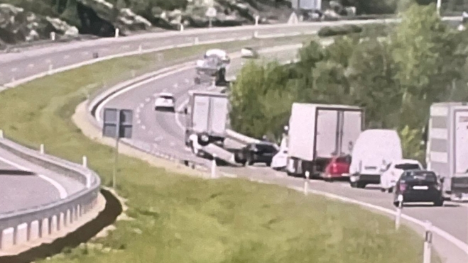 Varias llamadas recibidas en la sala de operaciones del 1-1-2 Castilla y León alertan de un accidente a la altura del kilómetro 362 de la A-6, sentido La Coruña, en Torre del Bierzo. Explican que un turismo ha quedado volcado, que en el lugar hay personal sanitario atendiendo a una herida, que está atrapada.