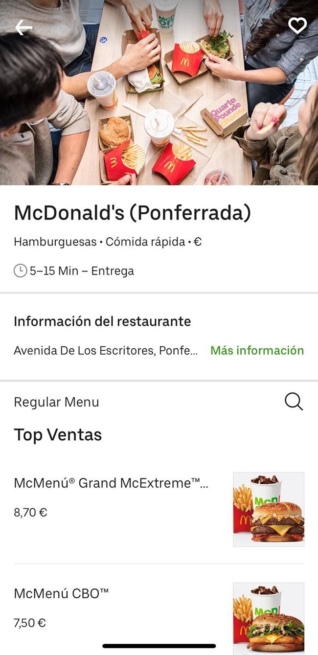 El restaurante de comida rápida Mcdonalds, ubicado en Avenida de los Escritores y en el Centro Comercial El Rosal, se adherió a esta plataforma este martes y fuentes cercanas a los establecimientos confirman un buen recibimiento. El tiempo medio de espera se sitúa entre 5 o 15 minutos. Uber Eats es una plataforma on-line de pedido de comida a domicilio, que fue creada por Uber en 2014 en San Francisco, California.