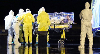 El avión de las Fuerzas Armadas en que se trasladó al misionero desde Freetown hasta la base militar de Torrejón contaba con una cámara de aislamiento para mantener estabilizado al enfermo y con más de una tonelada de material médico diverso. En él, viajaban dos tripulaciones de vuelo más dos equipos médicos, todos ellos protegidos con monos impermeables de los pies a la cabeza, gafas, mascarilla, guantes y calzas, para aislarlas de fluidos o partículas contaminantes en el área de trabajo próxima al paciente.