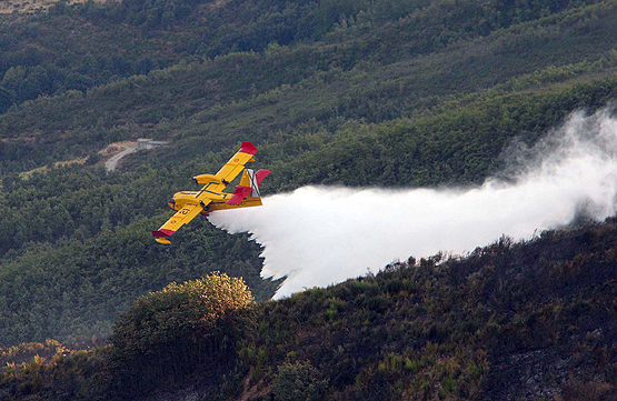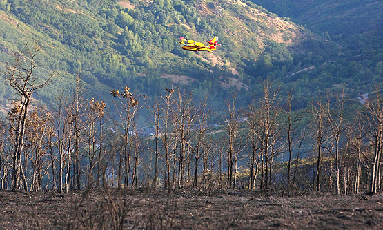 Avión de descarga en una zona ya quemada (César Sánchez)