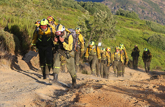 Uno de los capataces que participaban en las labores de extinción resultó herido durante las maniobras de despliegue en la zona donde el frente permanecía más activo, y tuvo que ser evacuado por caída con lesión en un brazo. Asimismo, uno de los bulldozer resultó quemado.